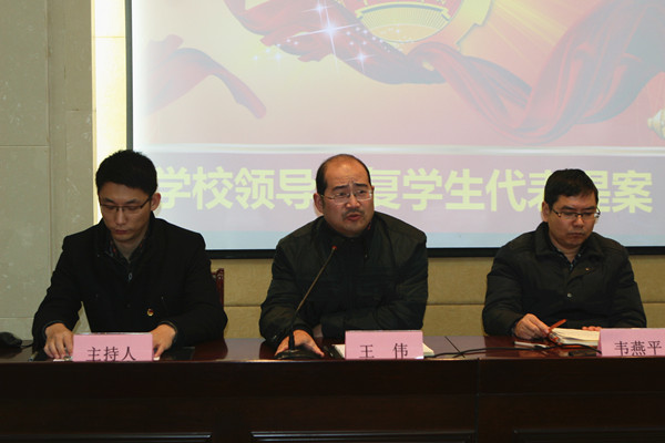 提案中许多问题表明,学生希望学校越来越好,却也更多地把管理的责任和事务推给了学校。高校长倡导在座的学生代表们,看问题不仅要看别人,更要看自己,把“我”放到学校的事务中去,让“我”参与到学校的管理中去。凡事要认为“这也有我的责任”,才能积极地去改变这个学校,进而去改变周围,改变社会。