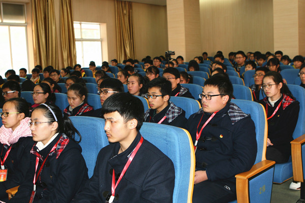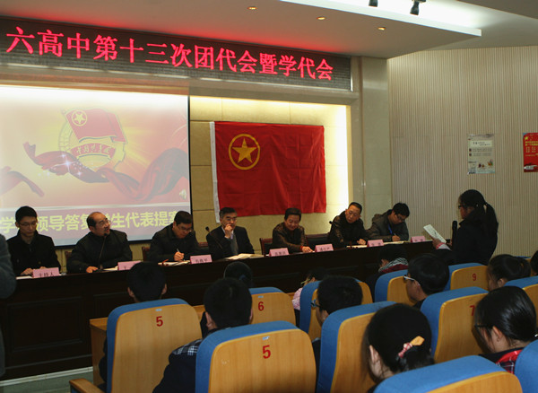 12月17日下午,无锡市第六高级中学第十三届团代会暨学代会学校领导答复学生代表提案正式举行,参加会议的有各班学生代表团员代表,高惠洪校长、潘庄严副校长、韦燕平副校长及总务处张健主任、德育处王伟主任、教务处孙骏主任分别就之前汇总的提案逐一答复学生代表,并接受学生代表自由提问。