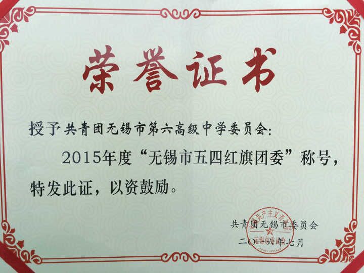 热烈祝贺我校团委荣获2015年度“无锡市五四红旗团委”荣誉称号,特此喜报!