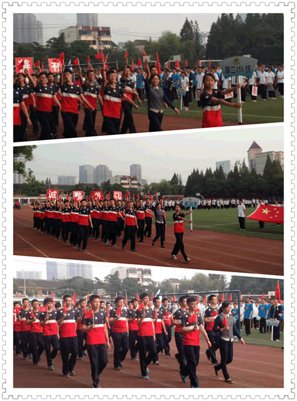 迎面走来的是高二(5)班的同学们,我们正迈着整齐的步伐走过主席台。身着统一班服的我们拿着小红旗昂首阔步,“斗志昂扬, 奋发图强。高二(5)班,展翅飞翔!”嘹亮的口号博得了阵阵掌声。